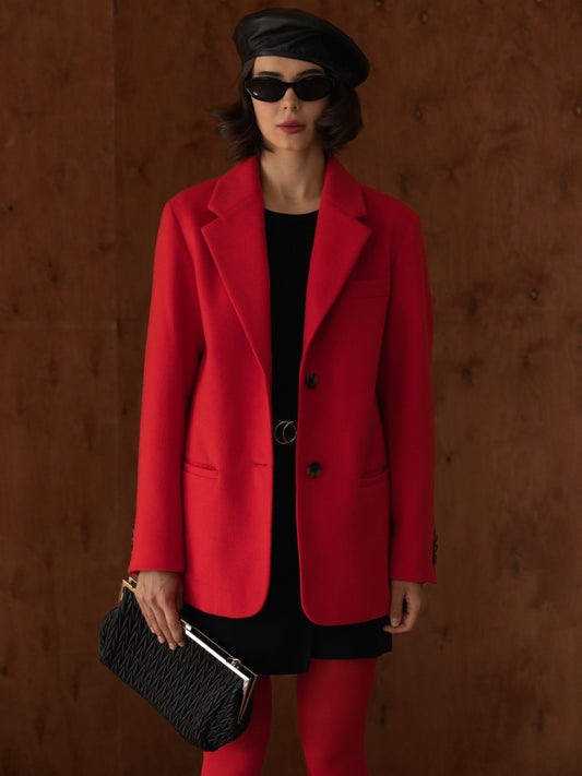 Single-breasted wool jacket, Red Flare