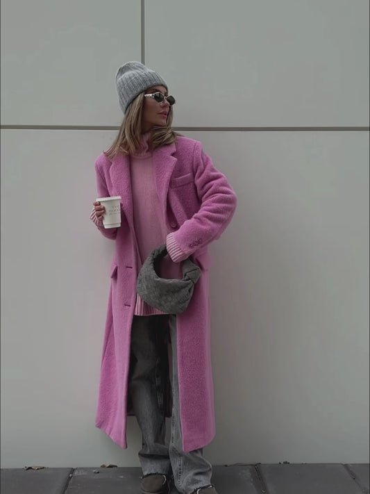 Pink Wool Coat with Masculine Shoulders