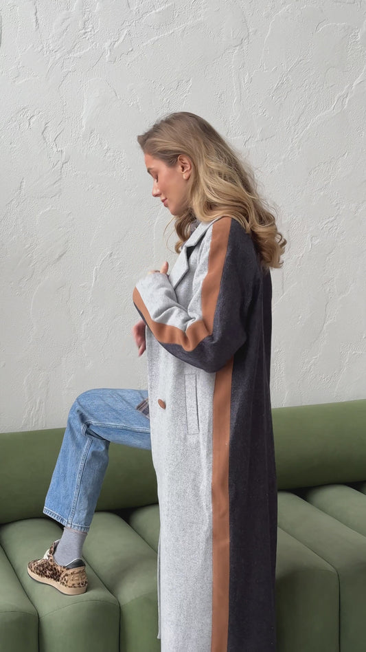 Three-color Wool Maxi Coat