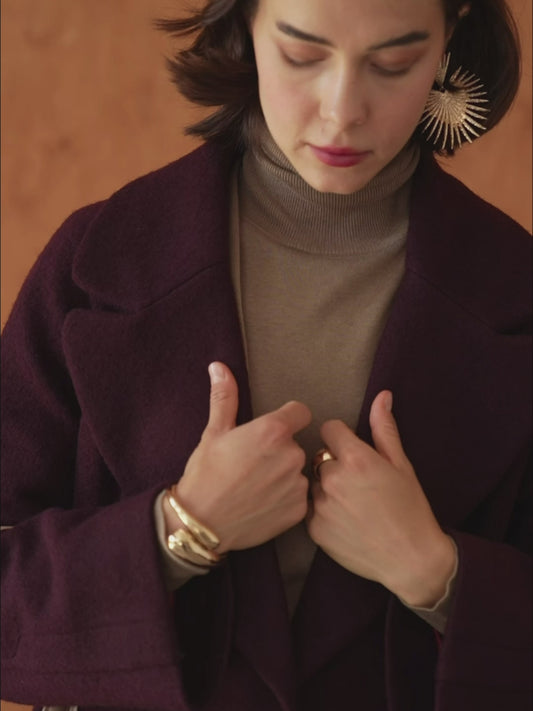 Double-Breasted Burgundy Coat with ribbon