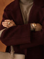 You can add optional winter lining made from 100% pressed wool batting, it's ensuring comfort in low as -15°C (5°F). Also, this model can be without the lining. These women’s double-breasted topcoat is ideal for mid-season wear, keeping you cozy in temperatures down to 0°C (32°F).