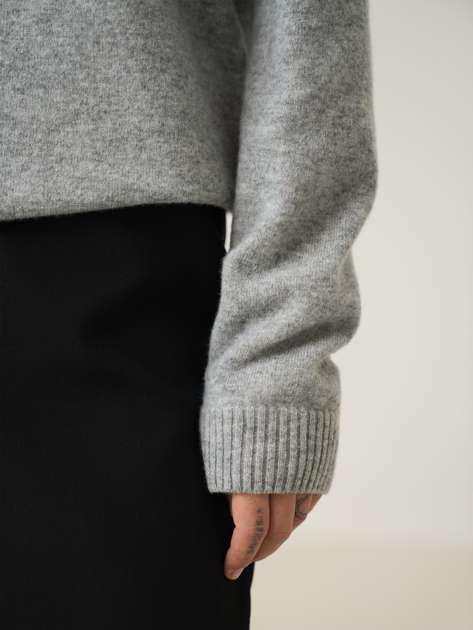 The CHELIE grey turtleneck is crafted from premium Italian yarn—a blend of 90% ultrafine merino wool and 10% cashmere. Lightweight yet insulating, it delivers natural warmth, breathability, and long-lasting softness without losing shape.