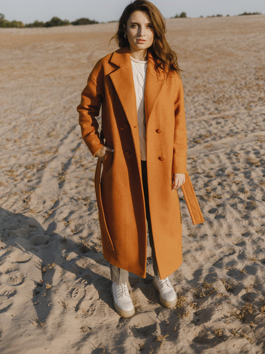 Sold outXS S M L XLLong Gray Wool Coat with Belt